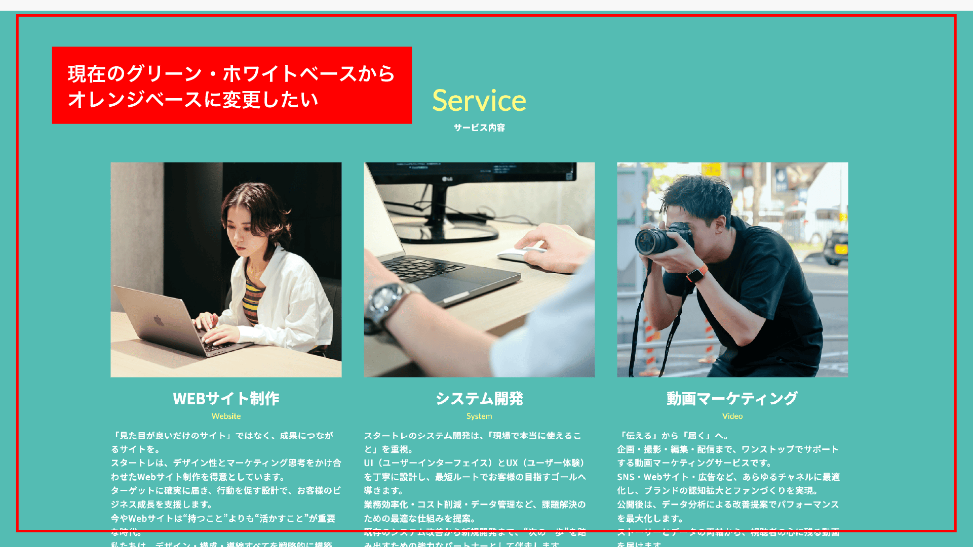 サイト全体のデザイン変更はできません。 ※サイト全体のカラー変更をご希望の場合は弊社にて有料での対応となります。内容によって料金は異なりますので、まずはお問い合わせください。