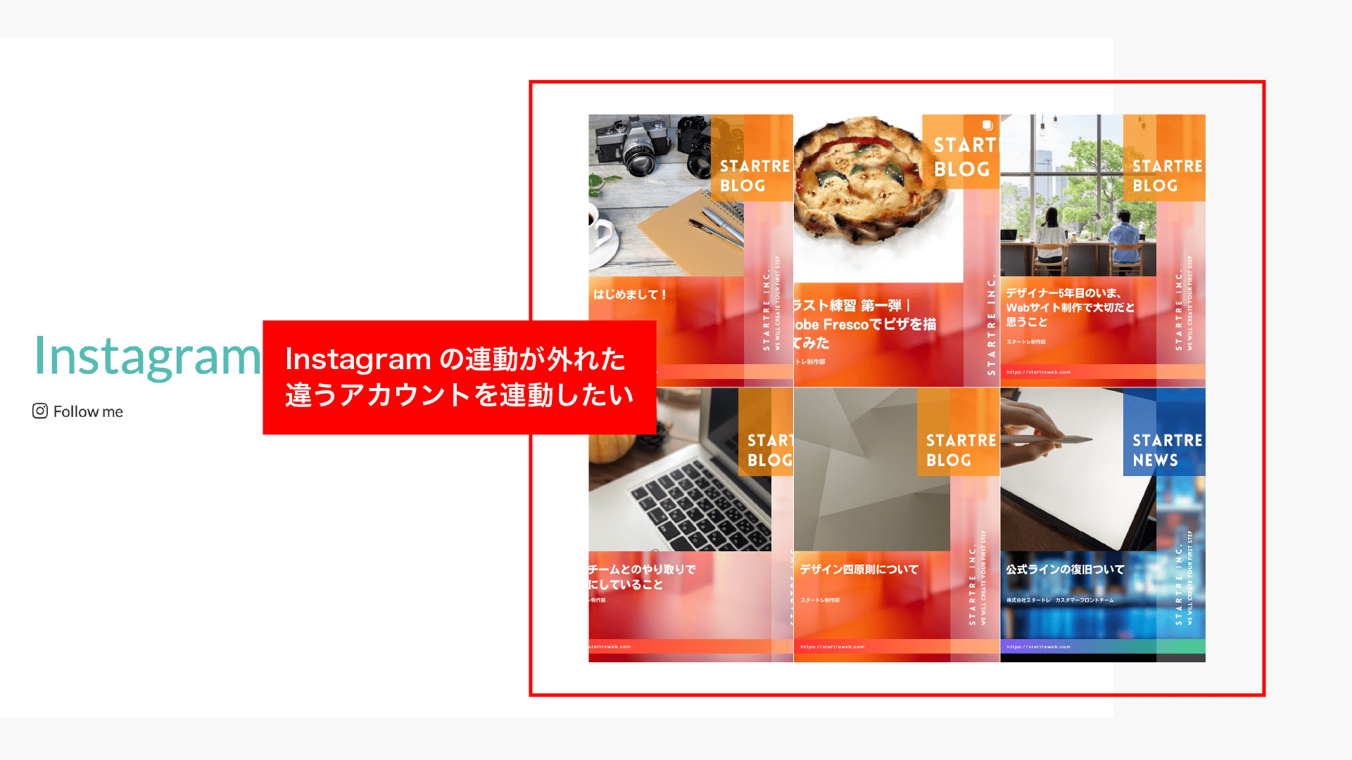 Instagram の連動はお客様で設定することができません。 全ページ共通で表示される項目は編集不可となります。 ※Instagram のパスワードを変更した場合など、稀にInstagram の連動が切れてしまう場合があります。 ※Instagram の連動・再連動をご希望の場合は弊社にて無料で対応させていただきます。アカウント情報をお伝え下さい。