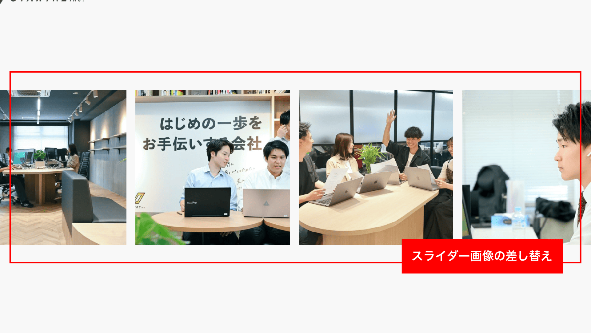 スライダー画像は、お客様ご自身での編集が可能となります。 ※デザイン提示時に「お客様での編集不可」と記載があった箇所は、仕様の都合上編集できません。