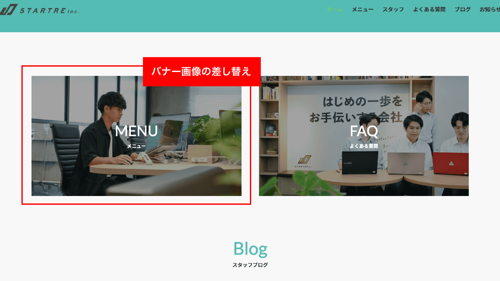 背景画像付きバナー(コールトゥアクション)は、お客様ご自身での編集が可能となります。